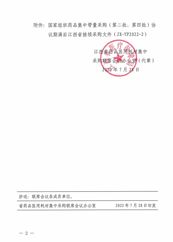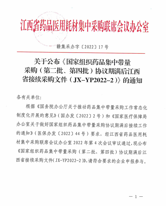 【江西】关于公布《国家组织药品集中带量采购(第二批、第四批)协议期满后江西省接续采购文件(JX-YP2022-2)》的通知
