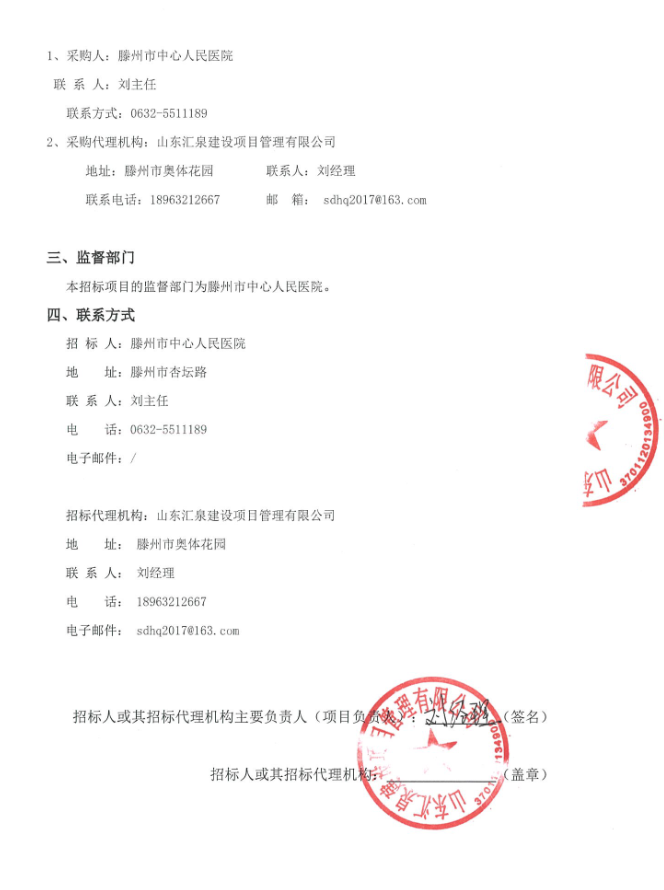 所属项目:山东省枣庄市滕州市中心人民医院院