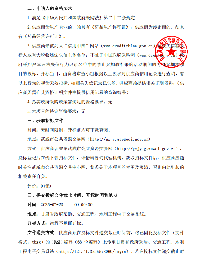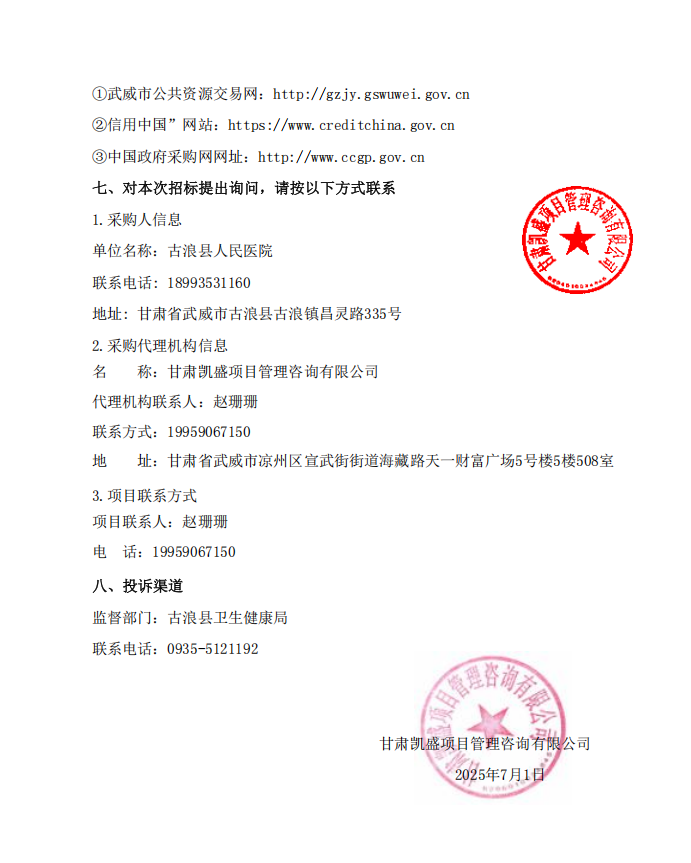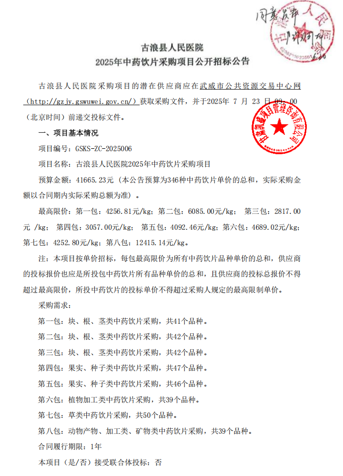 【武威市古浪县人民医院】甘肃省武威市古浪县人民医院2025年中药饮片采购项目