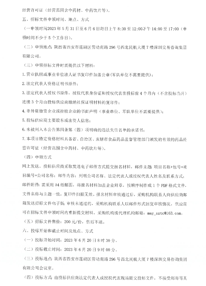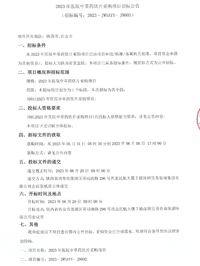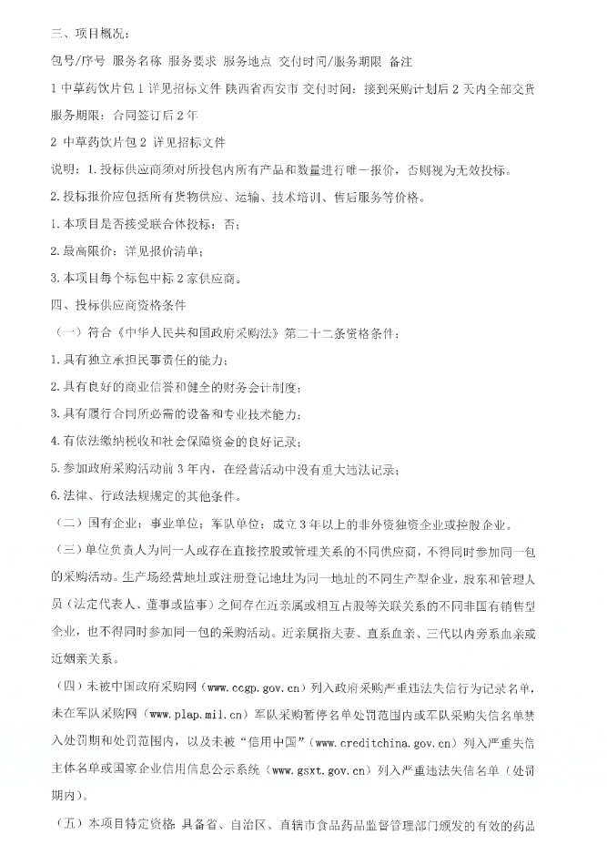 【陕西省某医院】陕西省2023年医院中草药饮片采购项目招标公告