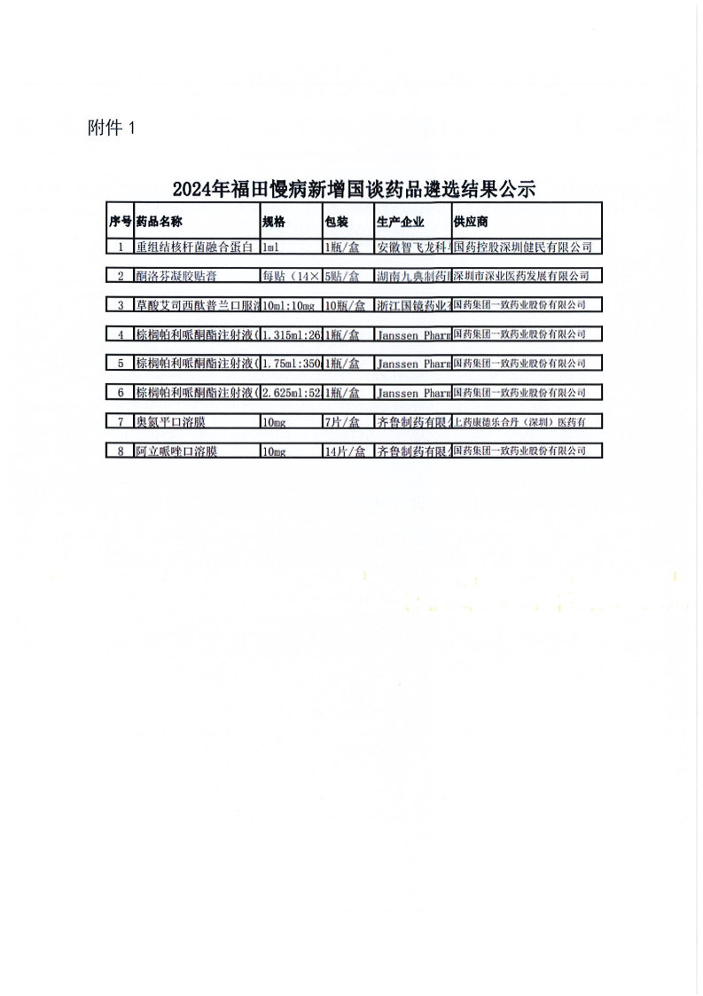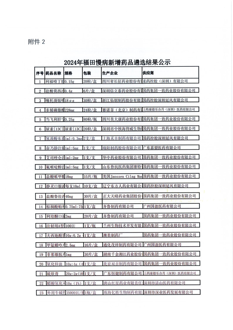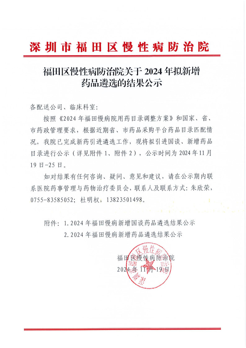 【深圳市福田区慢性病防治院】广东省深圳市福田区慢性病防治院关于2024年拟新增药品遴选的结果公示