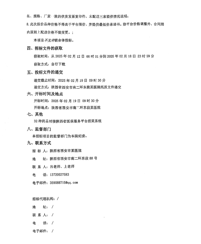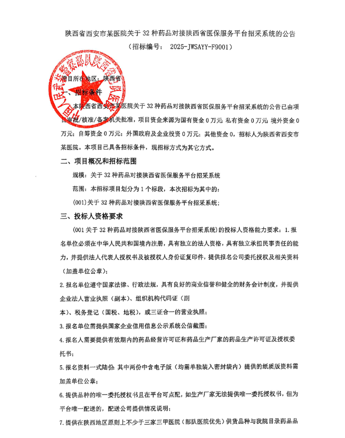 【西安市某医院】陕西省西安市某医院关于32种药品对接陕西省医保服务平台招采系统的公告
