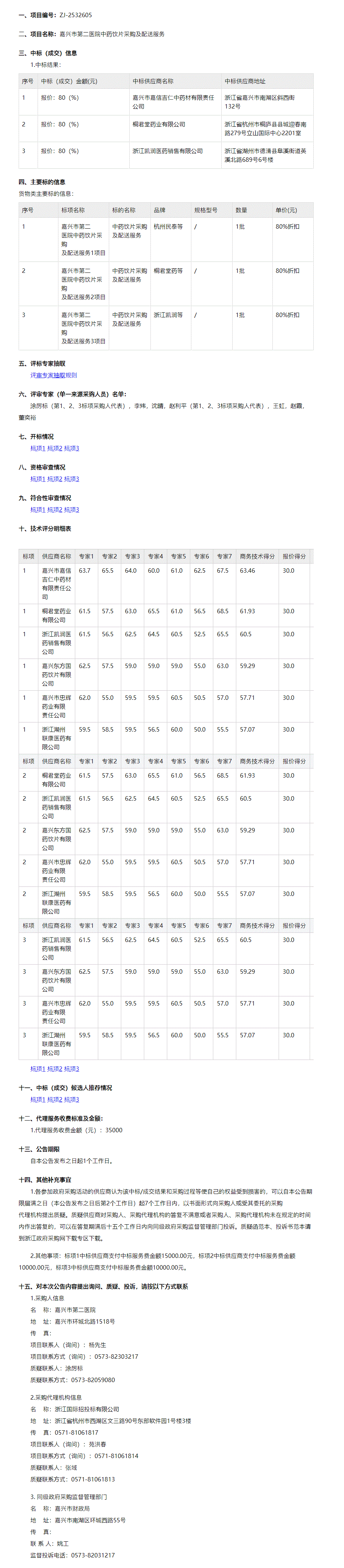 【嘉兴市第二医院】浙江国际招投标有限公司关于嘉兴市第二医院中药饮片采购及配送服务中标(成交)结果公告