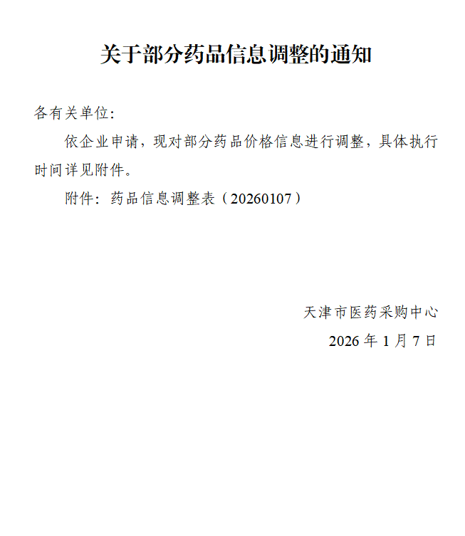 【天津】天津市关于部分药品信息调整的通知(20260107)