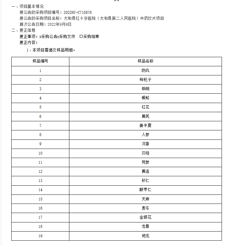 【安徽省阜阳市太和县红十字医院】(太和县第二人民医院)中药饮片项目变更公告