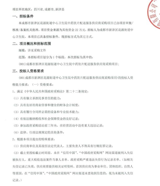 【新津区花源街道中心卫生院】成都市新津区花源街道中心卫生院中药饮片配送服务供应商采购项目