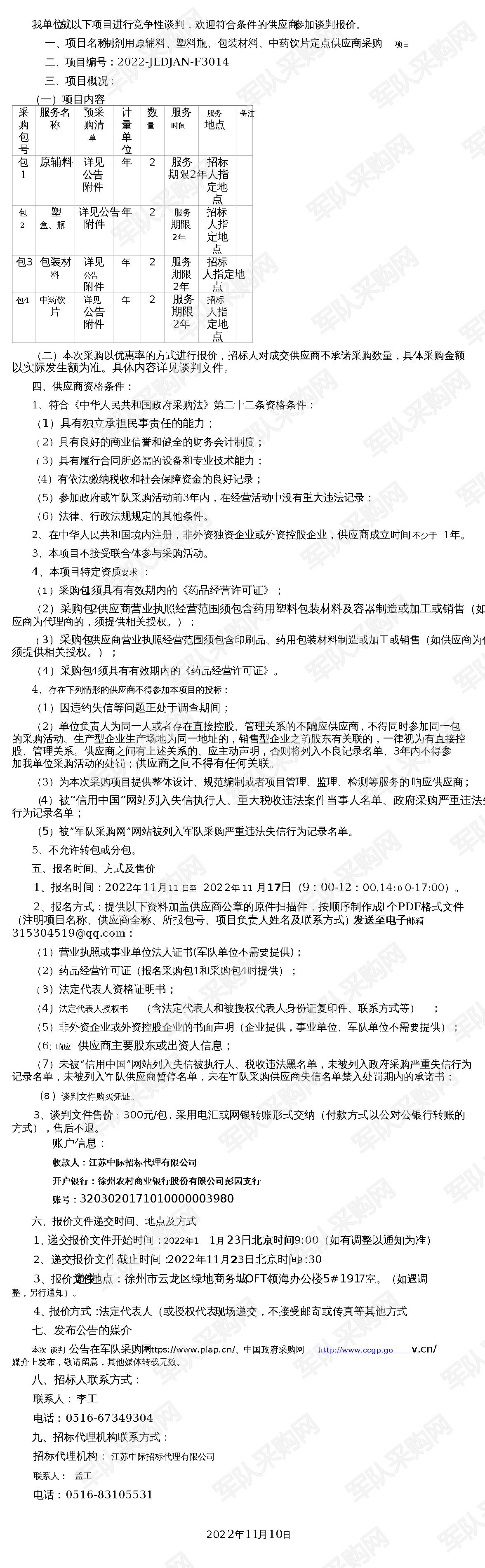 本次 谈判公告在军队采购网ttps∶//www.plap.cn/、中国政府采购网 http∶//ww.ccgp.go y.cn/媒介上发布,敬请留意,其他媒体转载无效。