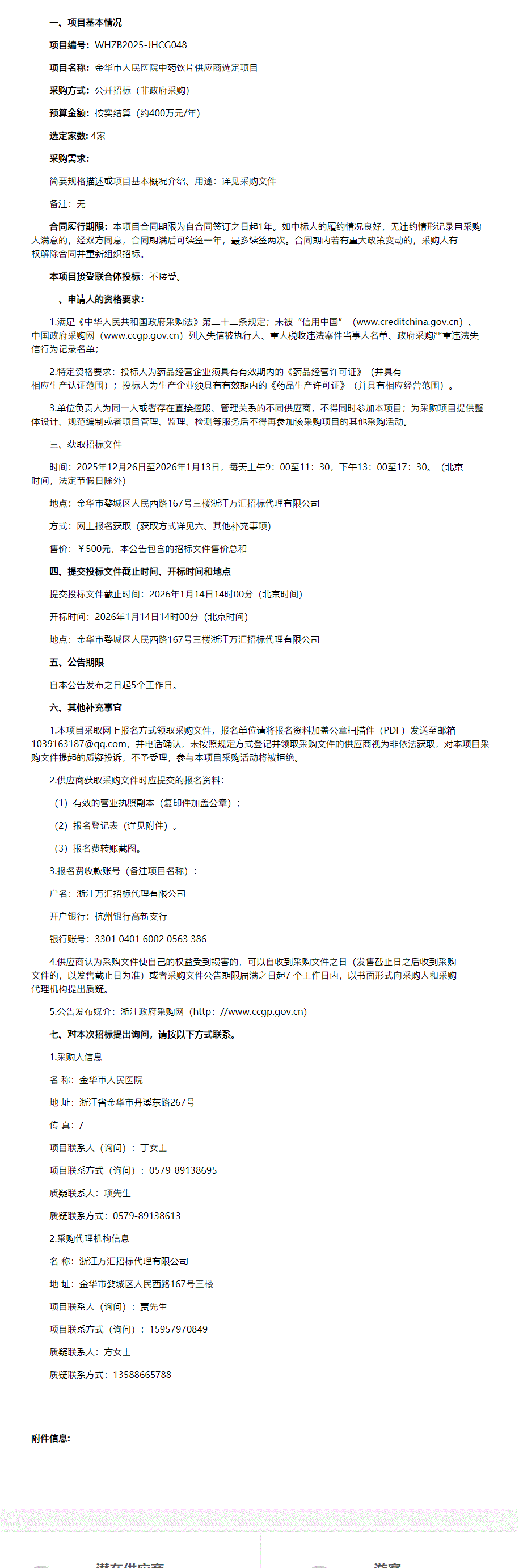 【金华市人民医院】关于金华市人民医院中药饮片供应商选定项目的公开招标公告