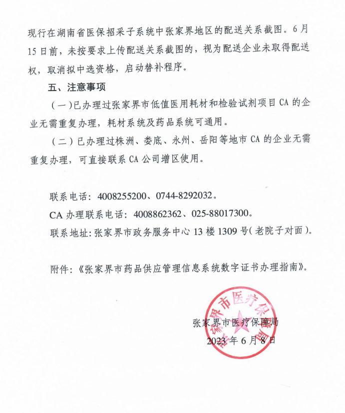 附件:《张家界市药品供应管理信息系统数字证书办理指南》。