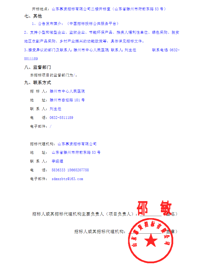 所属项目:山东省枣庄市滕州市中心人民医院院