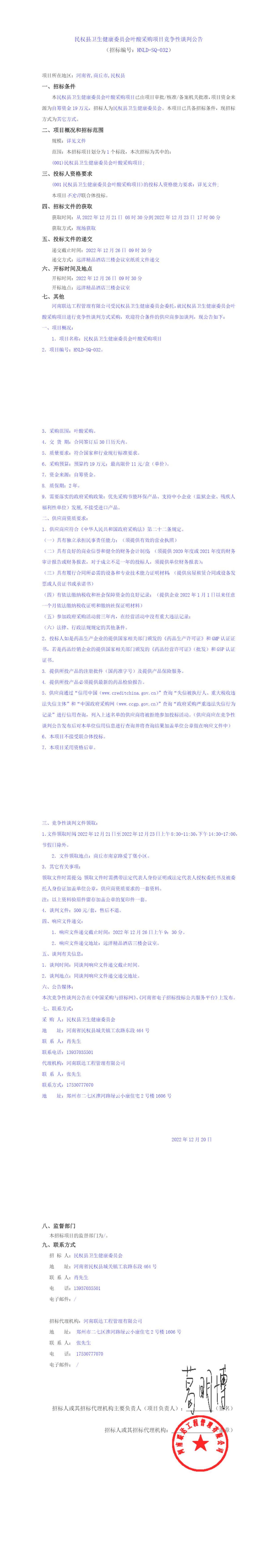 【商丘市民权县卫生健康委员会】民权县卫生健康委员会叶酸采购项目竞争性谈判公告