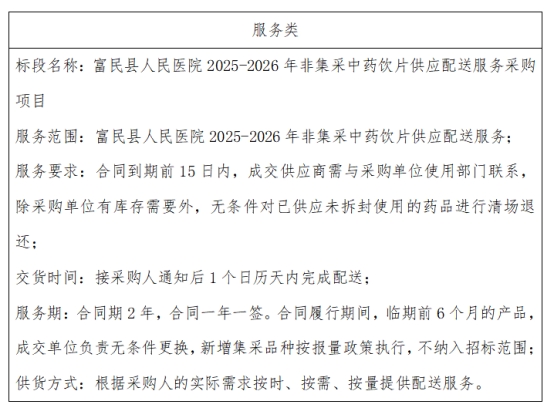 (二)项目名称:富民县人民医院2025-2026年非集采中药饮片供应配送服务采购项目