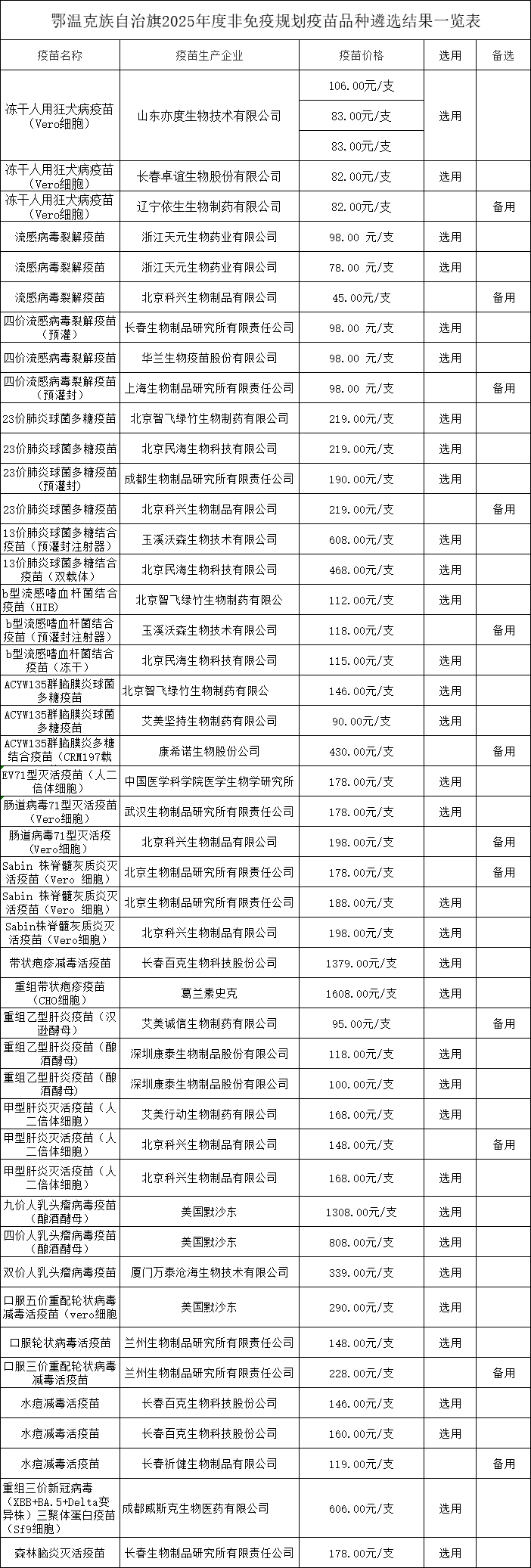 为进一步规范非免疫规划疫苗采购管理,保障非免疫规划疫苗供应和预防接种安全,鄂温克族自治旗疾病预防控制中心组织各预防接种单位针对非免疫规划疫苗公开进行遴选。