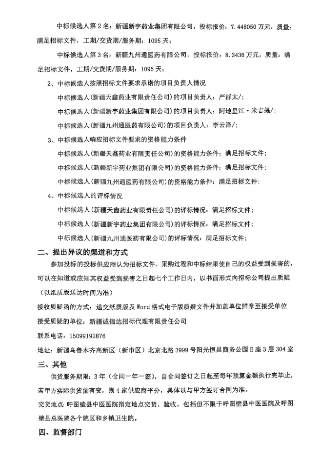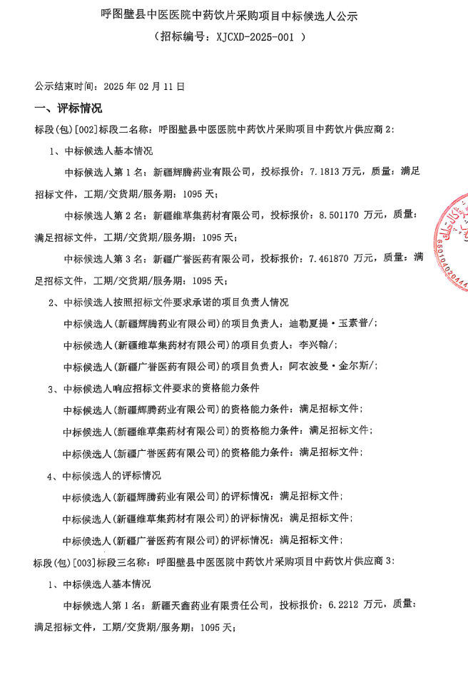 【昌吉回族自治州呼图壁县中医医院】新疆维吾尔自治区昌吉回族自治州呼图壁县中医医院中药饮片采购项目中标候选人公示