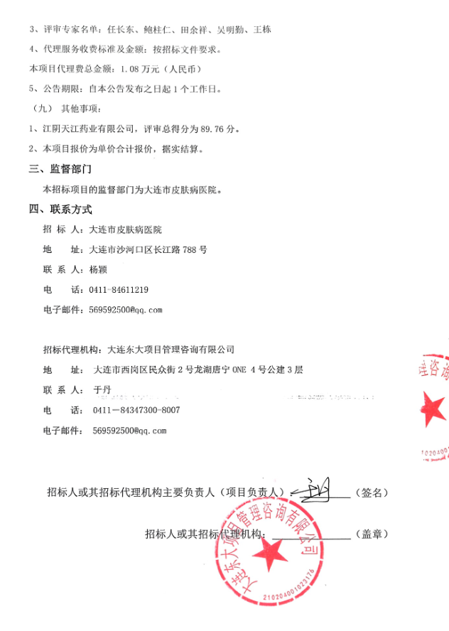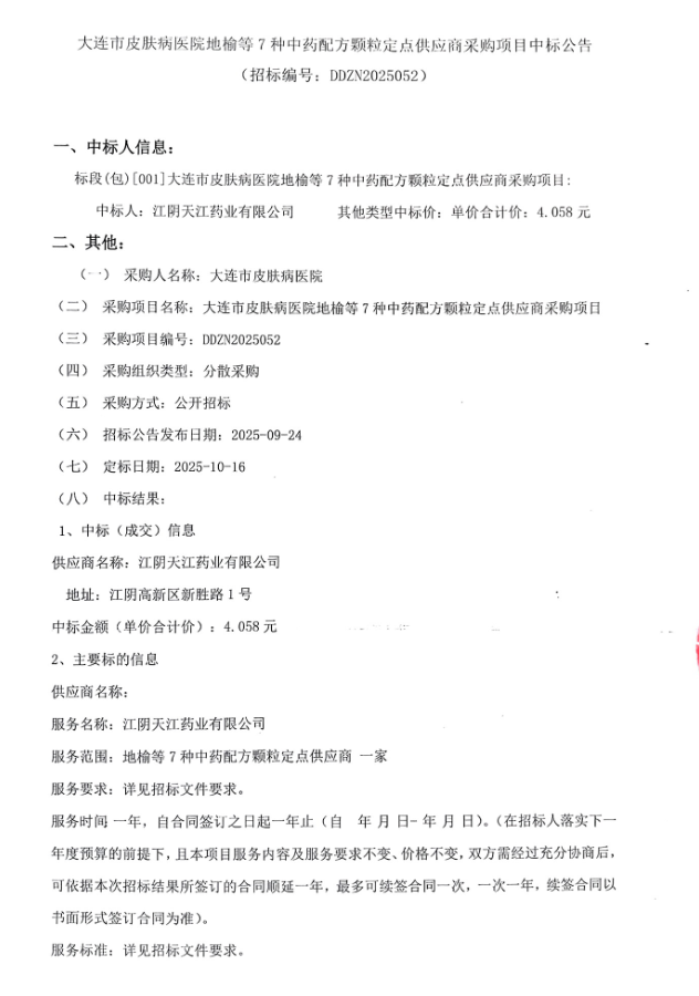 【大连市皮肤病医院】辽宁省大连市皮肤病医院地榆等7种中药配方颗粒定点供应商采购项目中标公告