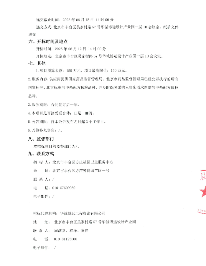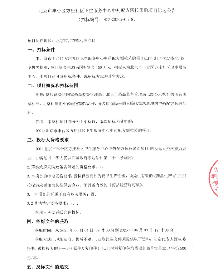 【北京市丰台区方庄社区卫生服务中心】北京市丰台区方庄社区卫生服务中心中药配方颗粒采购项目比选公告