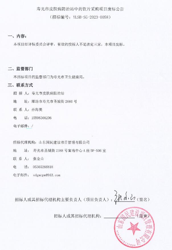 【潍坊市寿光市皮肤病防治】山东省潍坊市寿光市皮肤病防治站中药饮片采购项目废标公告