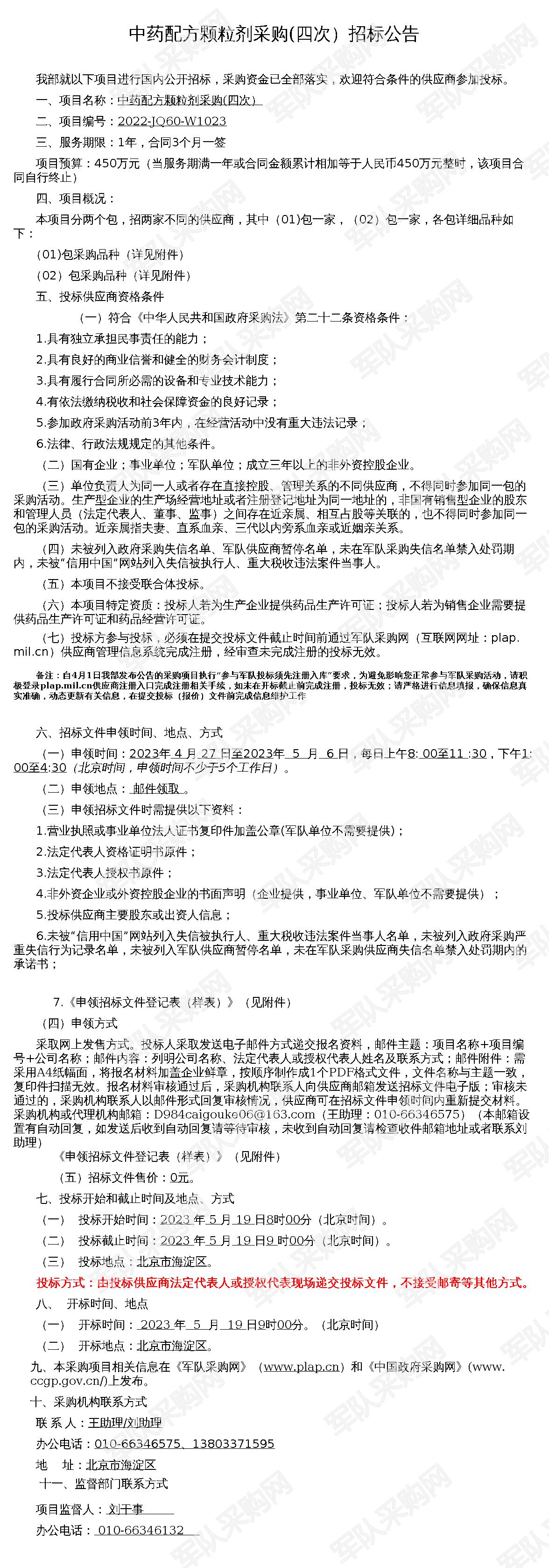 【军队采购】军队采购网中药配方颗粒剂采购(四次)招标公告2022-JQ60-W1023