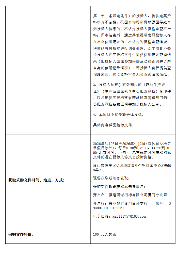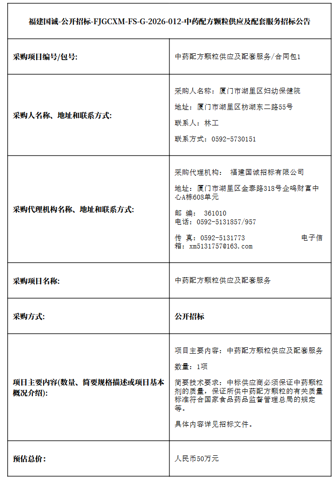 【厦门市湖里区妇幼保健院】福建国诚-公开招标-FJGCXM-FS-G-2026-012-中药配方颗粒供应及配套服务招标公告