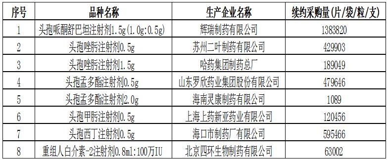 二、续约采购量:对8种药品实施全省范围内报量(具体续约药品及续约采购量信息见下表)。