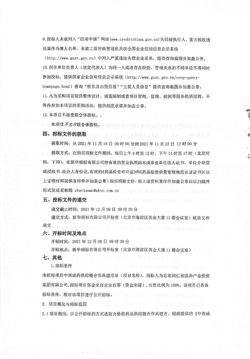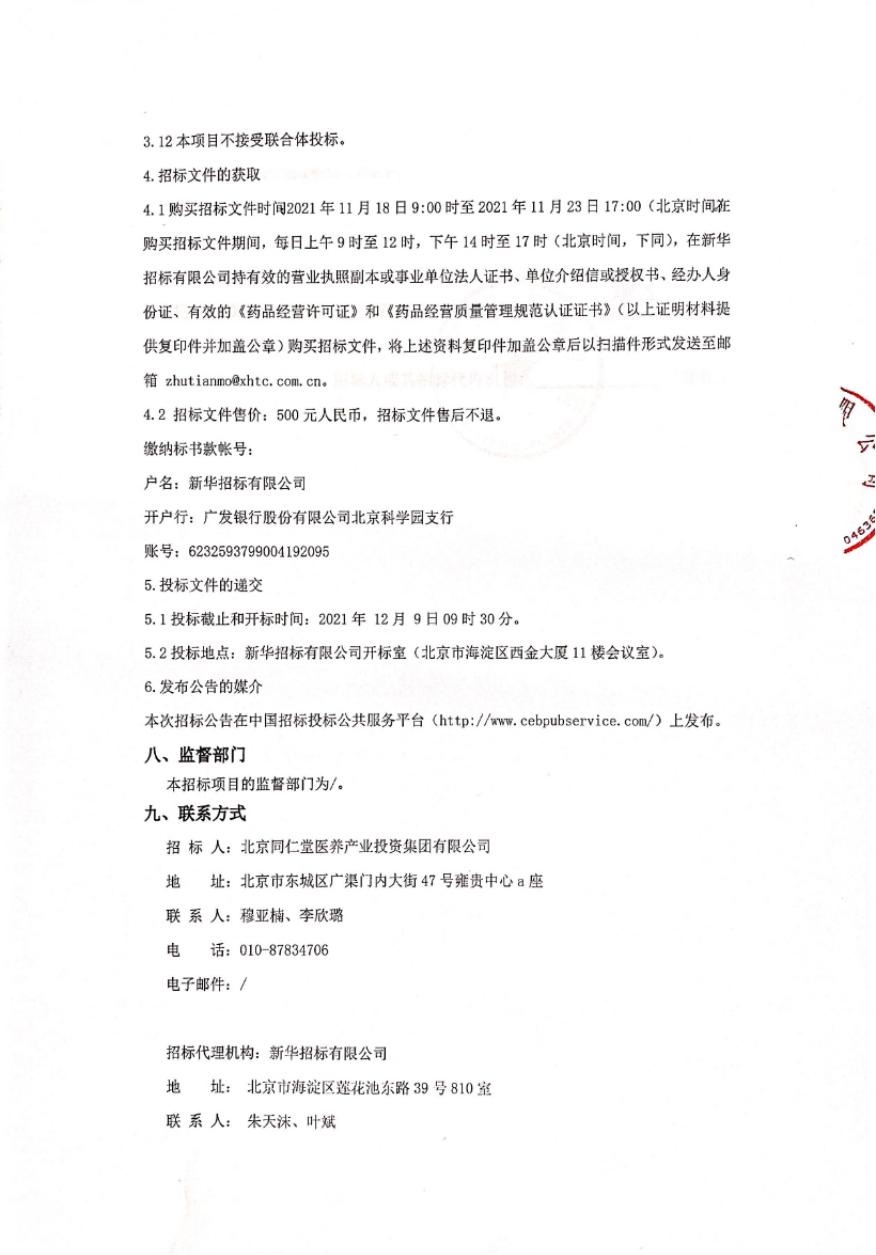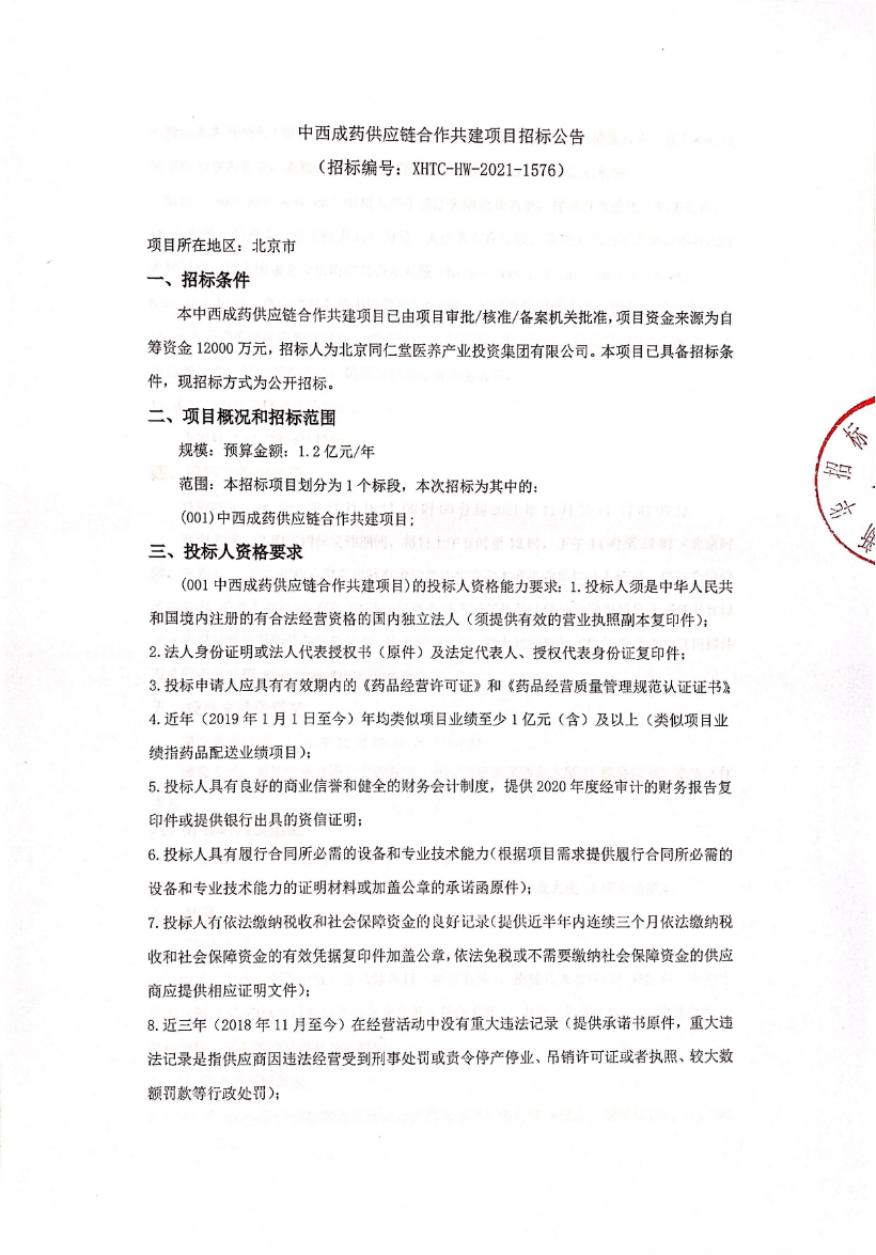 【北京】北京市中西成药供应链合作共建项目招标公告