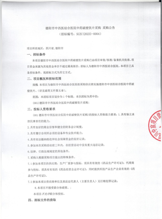 【德阳市中西医结合医院】四川省德阳市中西医结合医院中药破壁饮片采购采购公告