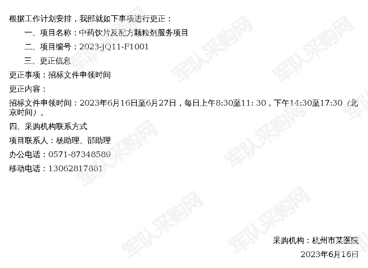【军队采购】军队采购网中药饮片及配方颗粒剂服务项目更正公告2023-JQ11-F1001