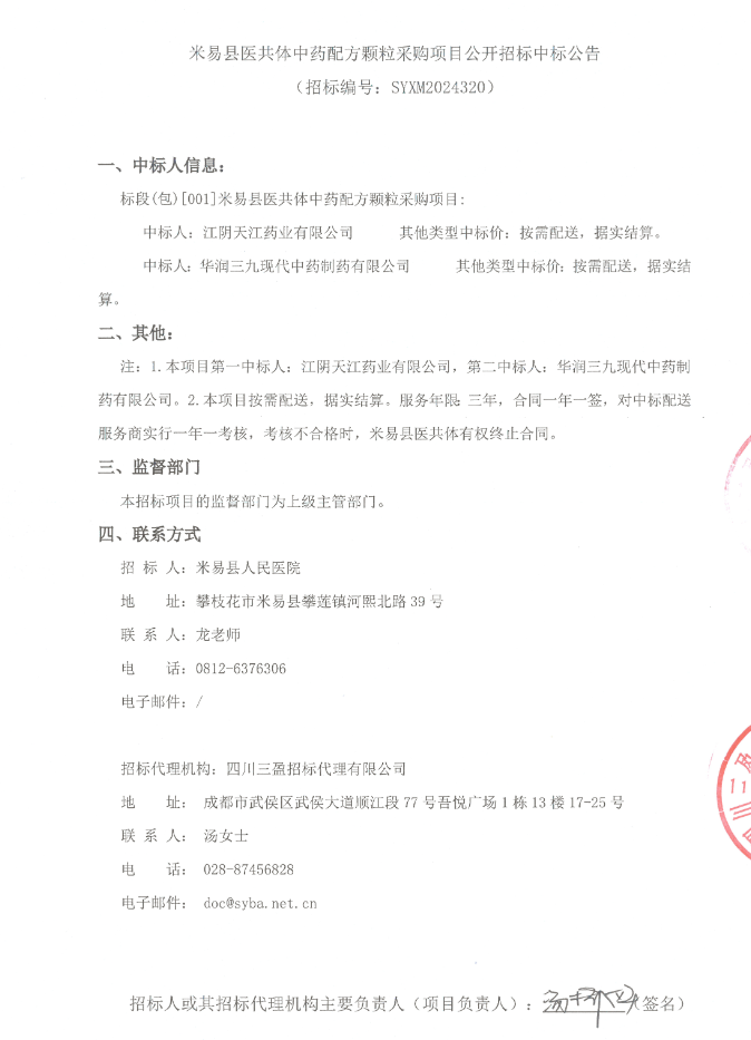 【攀枝花市米易县人民医院】四川省攀枝花市米易县医共体中药配方颗粒采购项目公开招标中标公告