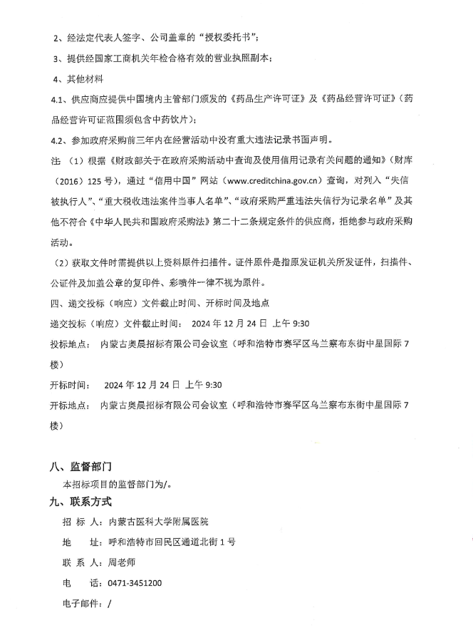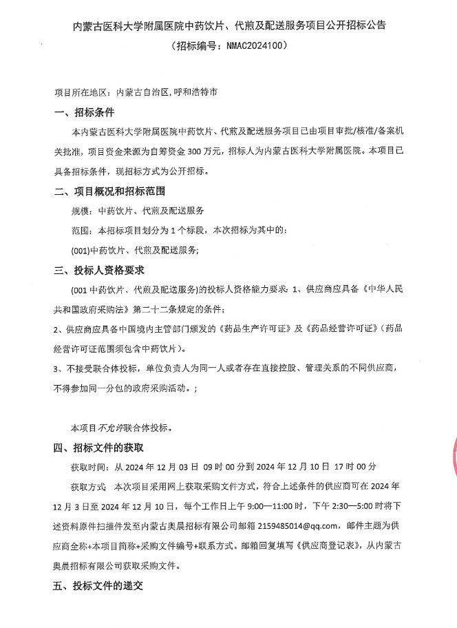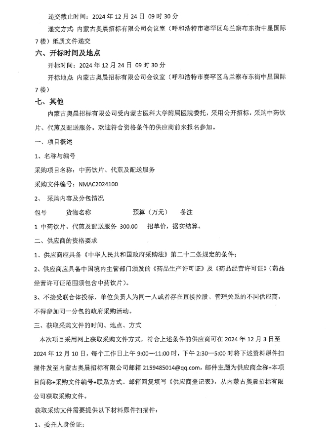 【内蒙古医科大学附属医院】内蒙古医科大学附属医院中药饮片、代煎及配送服务项目公开招标公告