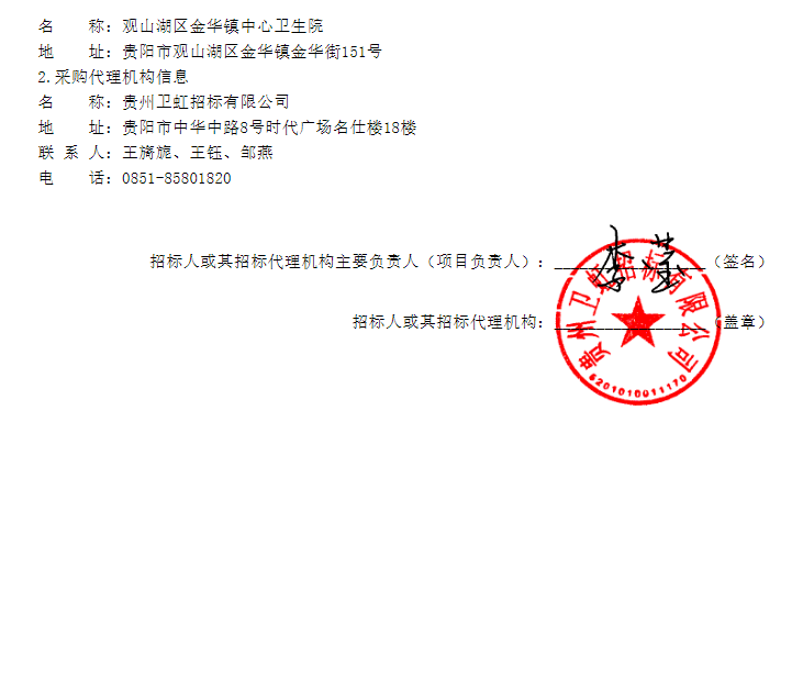 所属项目:贵州省贵阳市观山湖区金华镇中心卫