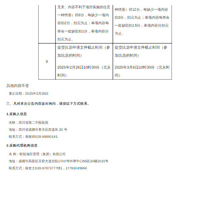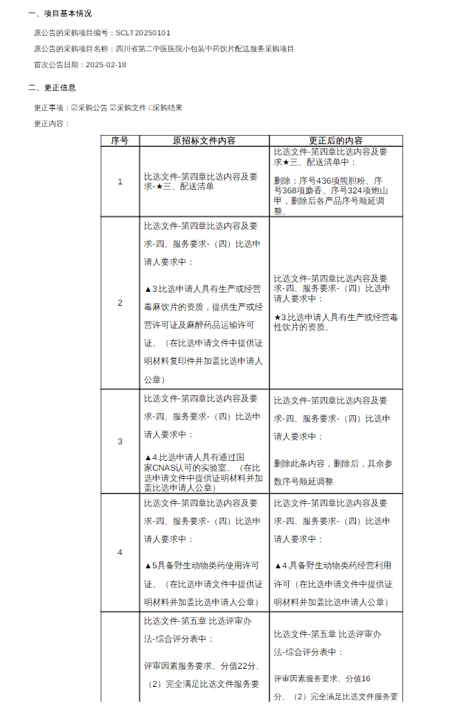 【四川省第二中医医院】四川省第二中医医院小包装中药饮片配送服务采购项目比选更正公告