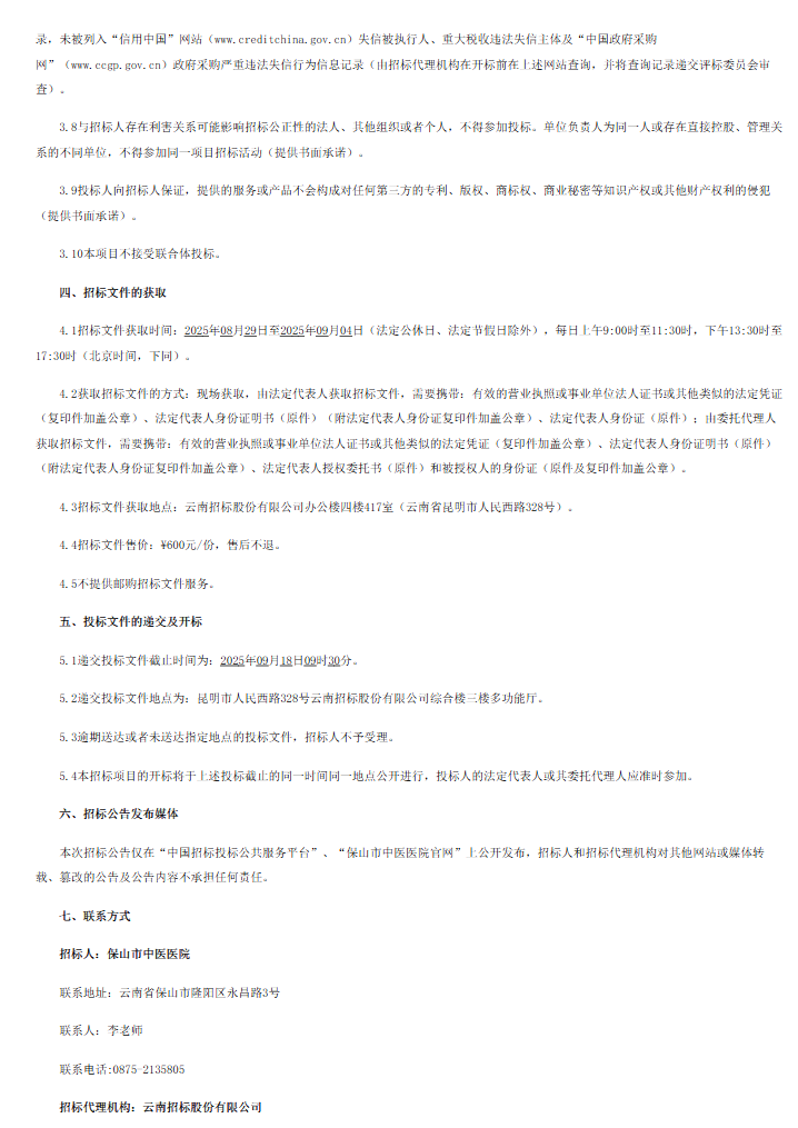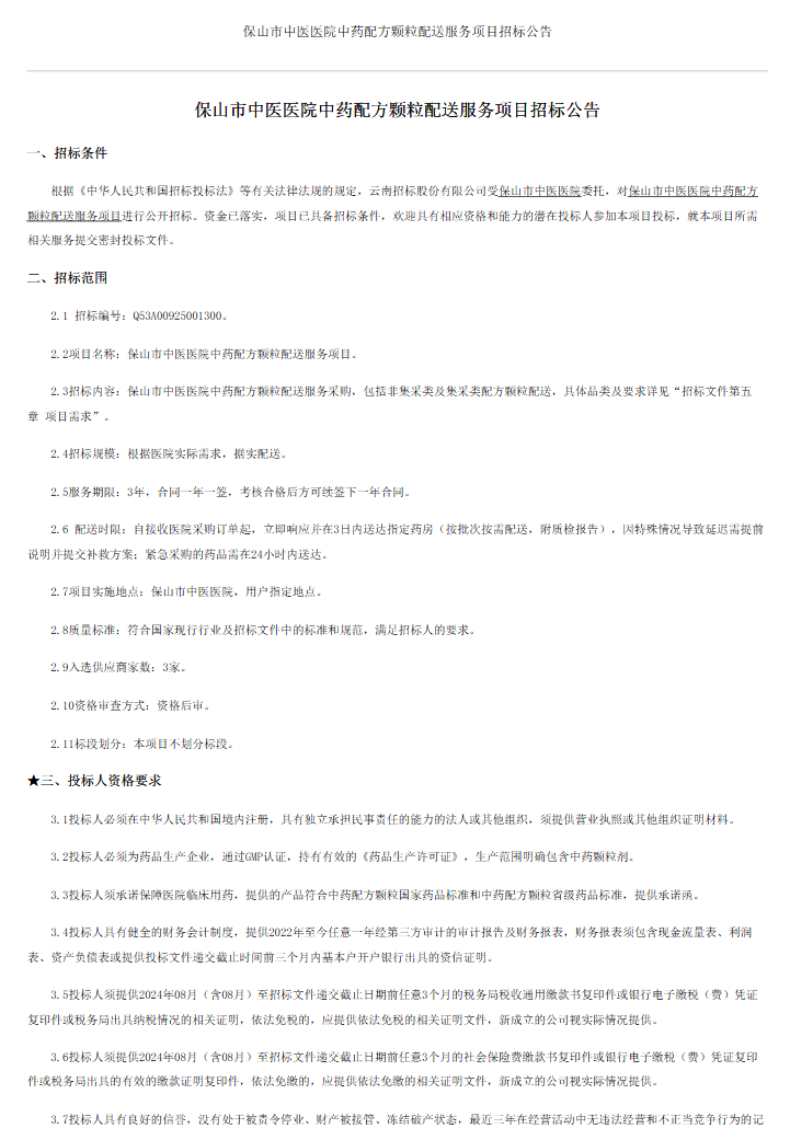 【保山市中医医院】云南省保山市中医医院中药配方颗粒配送服务项目招标公告