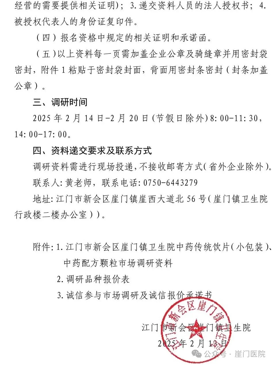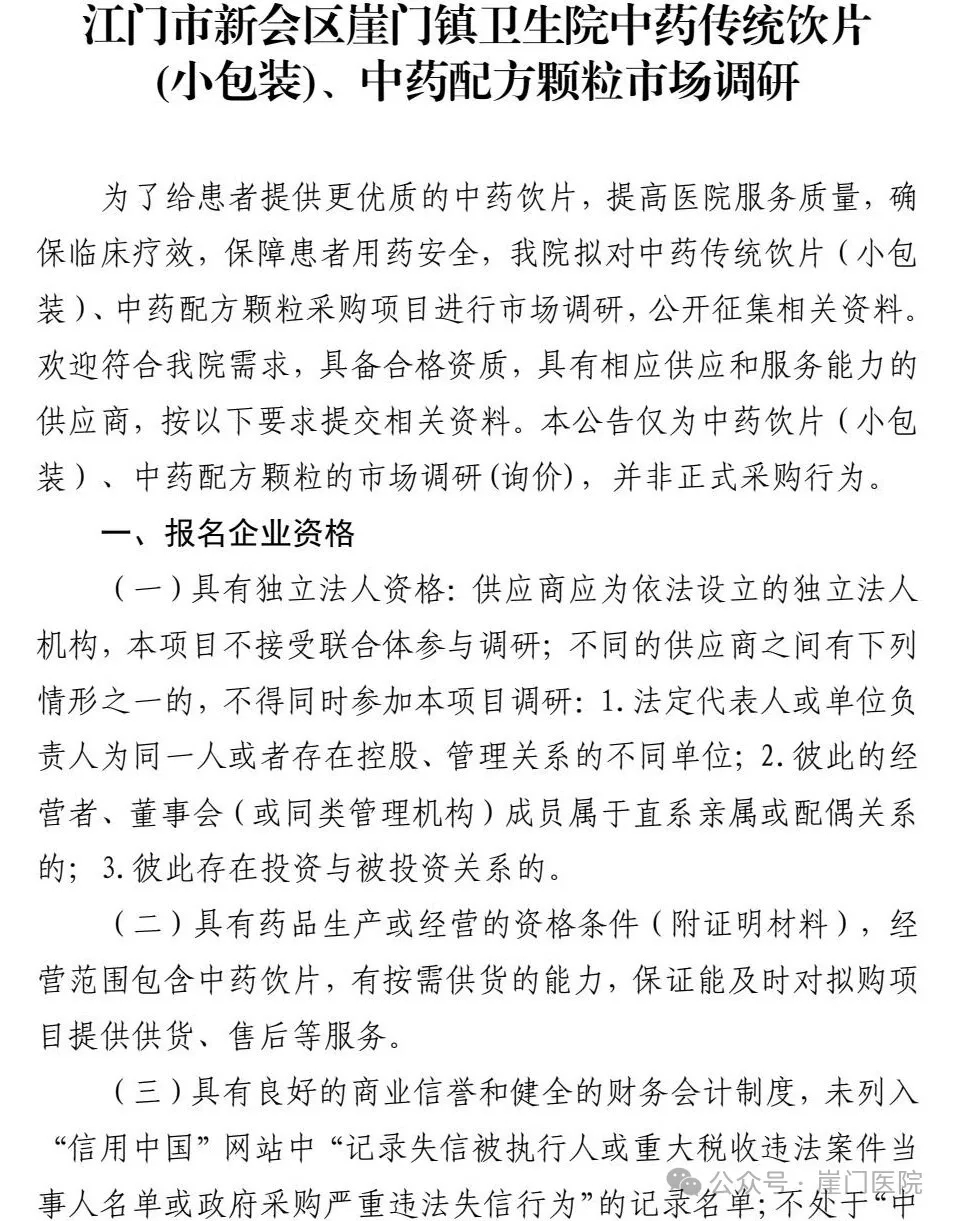 【江门市新会区崖门镇卫生院】广东省江门市新会区崖门镇卫生院中药传统饮片(小包装)、中药配方颗粒市场调研