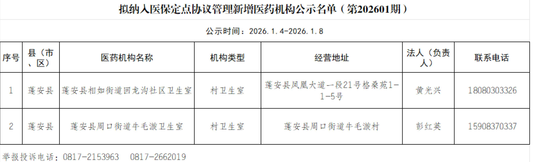 【南充】拟纳入医保定点协议管理新增医药机构公示名单(第202601期)