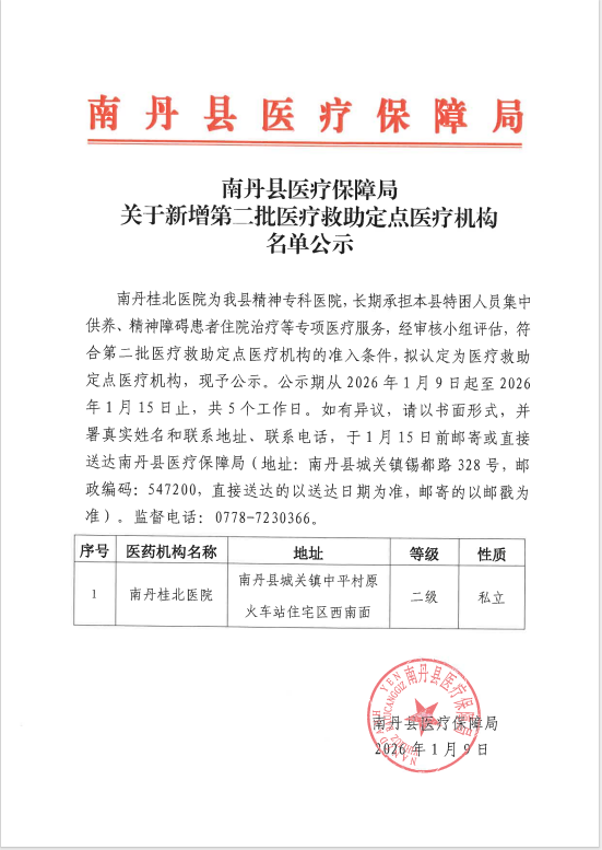 【河池】南丹县医疗保障局关于新增第二批医疗救助定点医疗机构名单公示