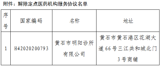 【黄石】关于解除黄石市明阳诊所有限公司定点医疗机构服务协议的公示