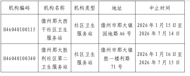 儋州市医疗保险服务中心决定中止、解除服务协议的定点医疗机构共计4家,现将相关信息予以公布(附后)。这4家定点医疗机构服务协议中止、解除后产生的医药费用,医疗保障基金不予支付。