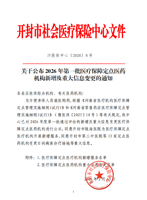 【开封】关于公布2026年第一批医疗保障定点医药机构新增及重大信息变更的通知