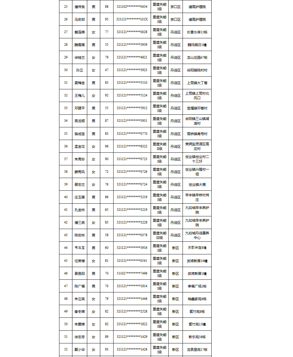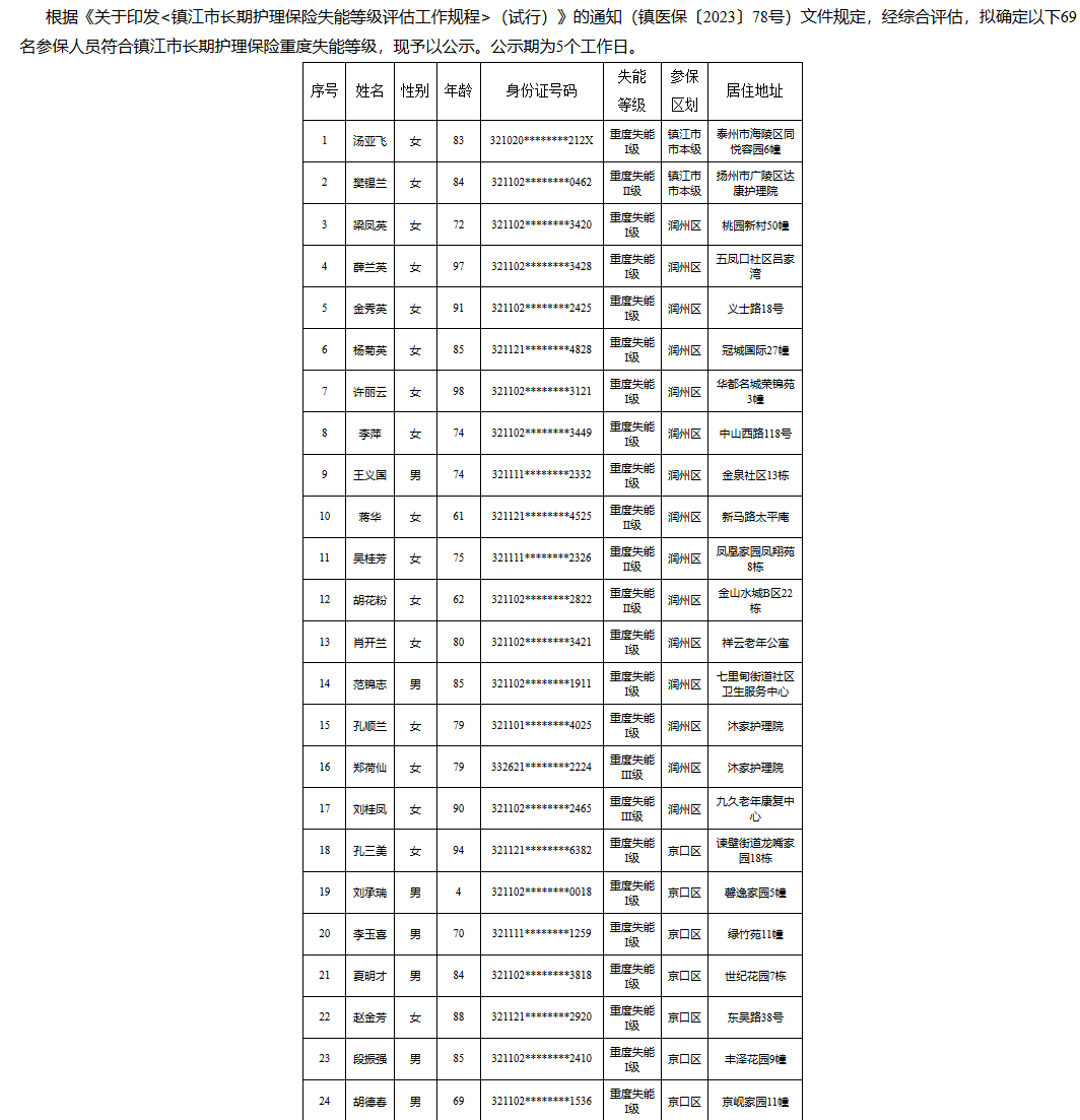 【镇江】2026年度镇江市长期护理保险失能等级评估结论公示(2月第一批)
