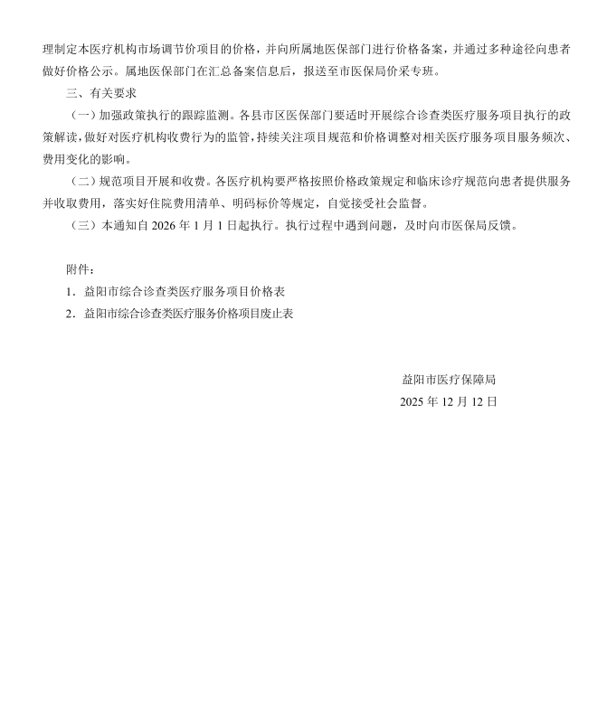 【益阳】益阳市医疗保障局关于规范整合综合诊查类医疗服务价格项目的通知