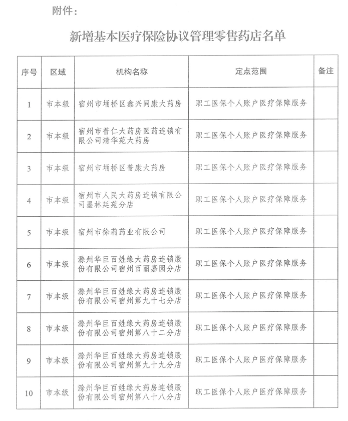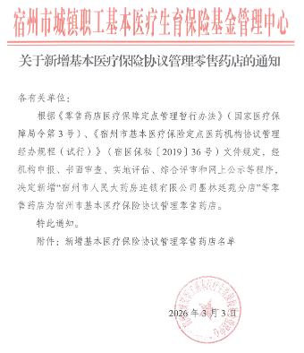 【宿州】关于新增基本医疗保险协议管理零售药店的通知
