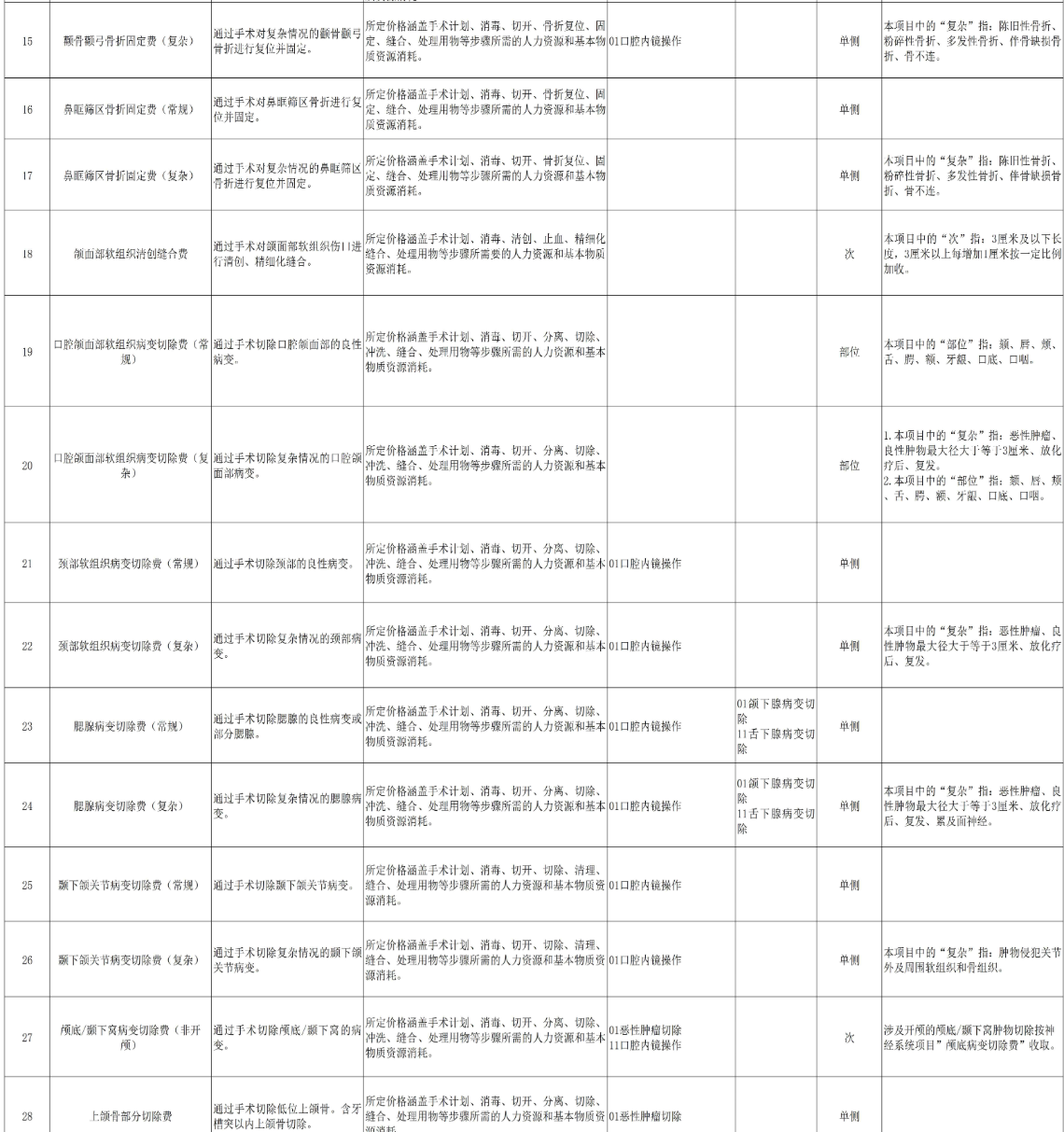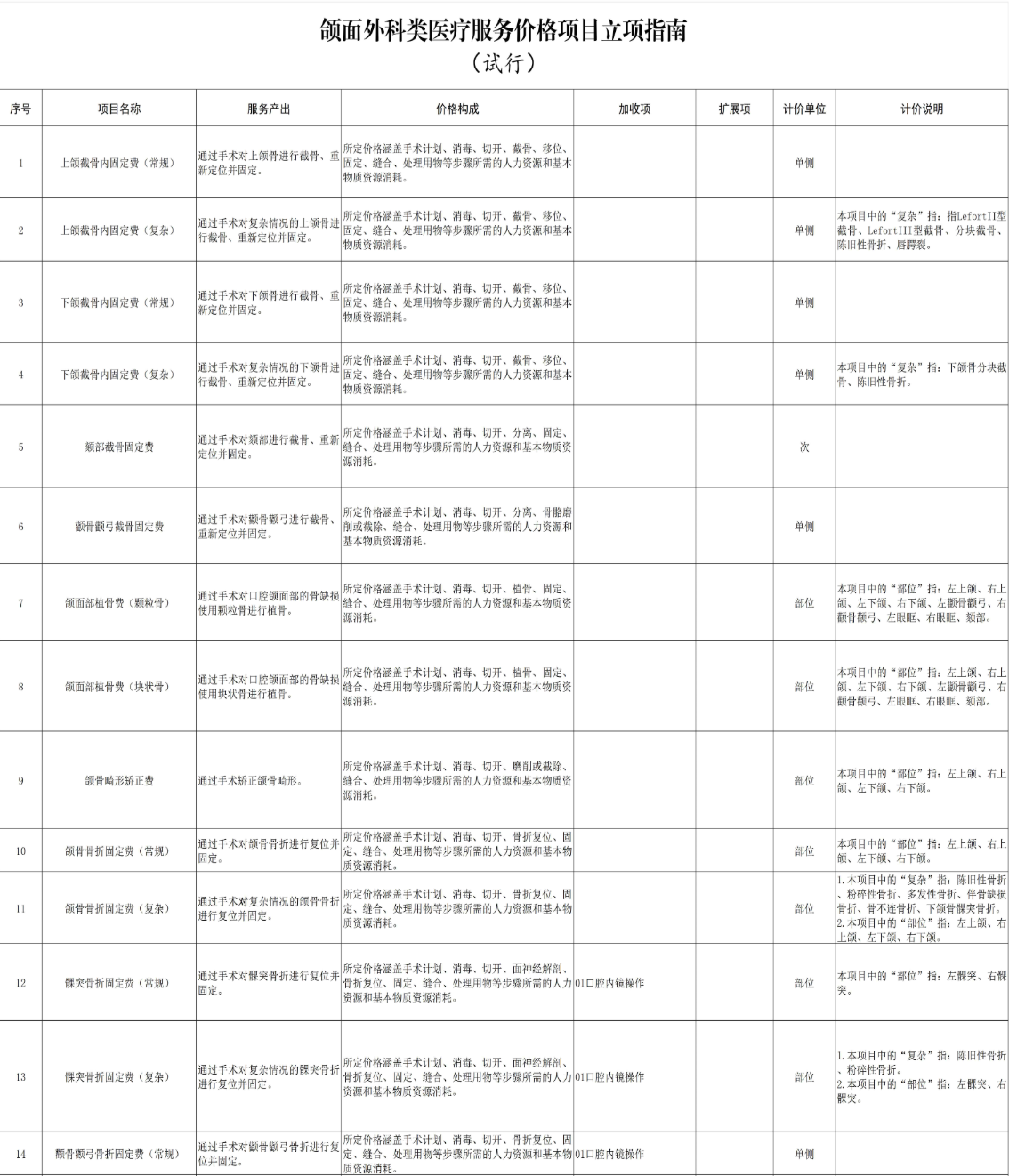 【福建】《颌面外科类医疗服务价格项目立项指南(试行)》