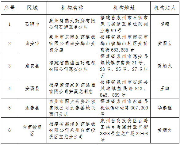 为进一步提升国家医保谈判药品供应保障水平,更好满足广大参保患者合理的用药需求,根据《泉州市医疗保障局 泉州市卫生健康委员会关于切实做好2022年国家医保谈判药品落地工作的通知》(泉医保〔2023〕39号)和《泉州市医疗保障基金中心关于开展2023年“双通道”定点零售药店遴选工作的通告》,同意将“泉州市光前医院”1家定点医疗机构及“泉州鹭燕大药房有限公司石狮五星分店”等6家定点零售药店纳入“双通道”管理(名单详见附件)。