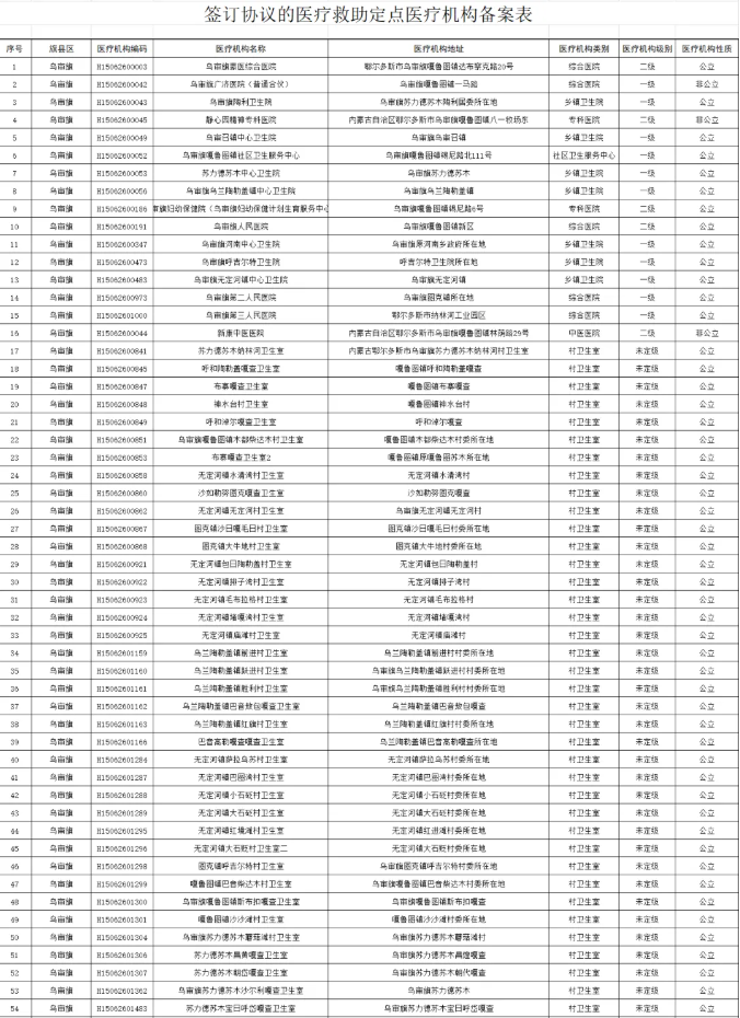 【鄂尔多斯】乌审旗医疗保障局关于医疗救助定点医疗机构名单的公示