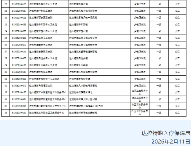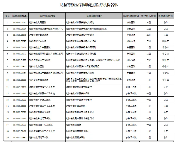 【鄂尔多斯】达拉特旗医疗救助定点医疗机构名单