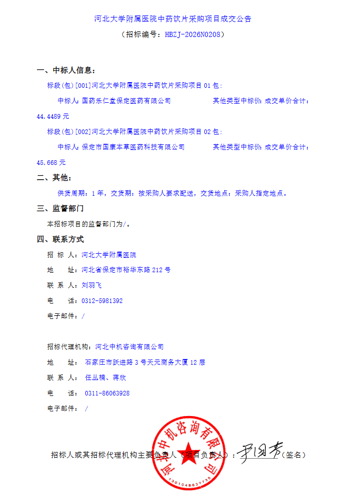 河北大学附属医院中药饮片采购项目成交公告