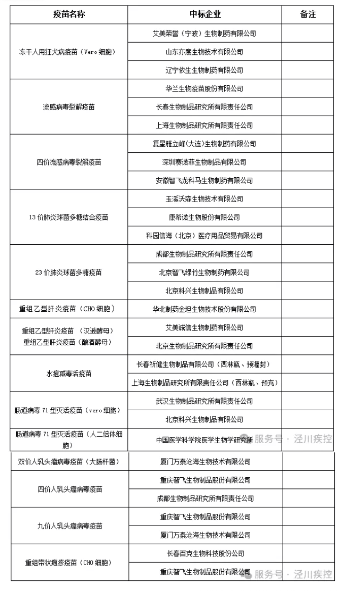 泾川县2026年非免疫规划疫苗遴选结果目录