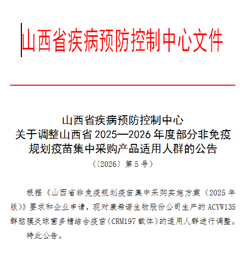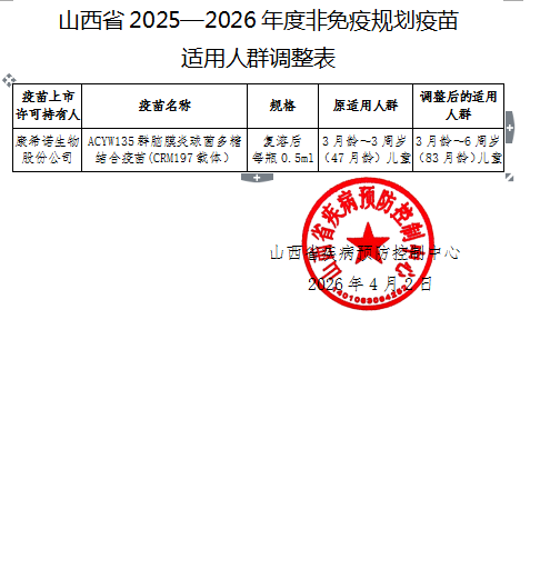 山西省疾病预防控制中心关于调整山西省2025—2026年度部分非免疫规划疫苗集中采购产品适用人群备案的报告