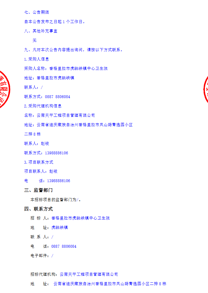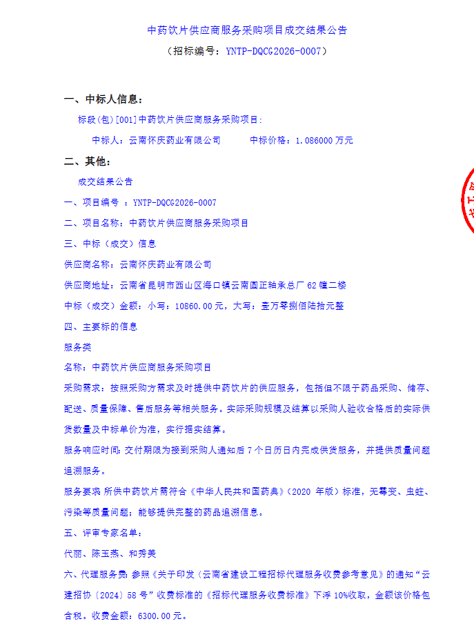 云南省香格里拉市虎跳峡镇中心卫生院中药饮片供应商服务采购项目成交结果公告